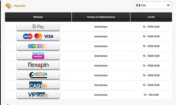Win Unique Casino dà priorità alla fornitura di transazioni finanziarie veloci e convenienti per i suoi giocatori italiani. Il casinò ha sviluppato un sistema ottimizzato che consente di effettuare i processi di deposito e prelievo nel modo più efficiente e senza ritardi possibile.